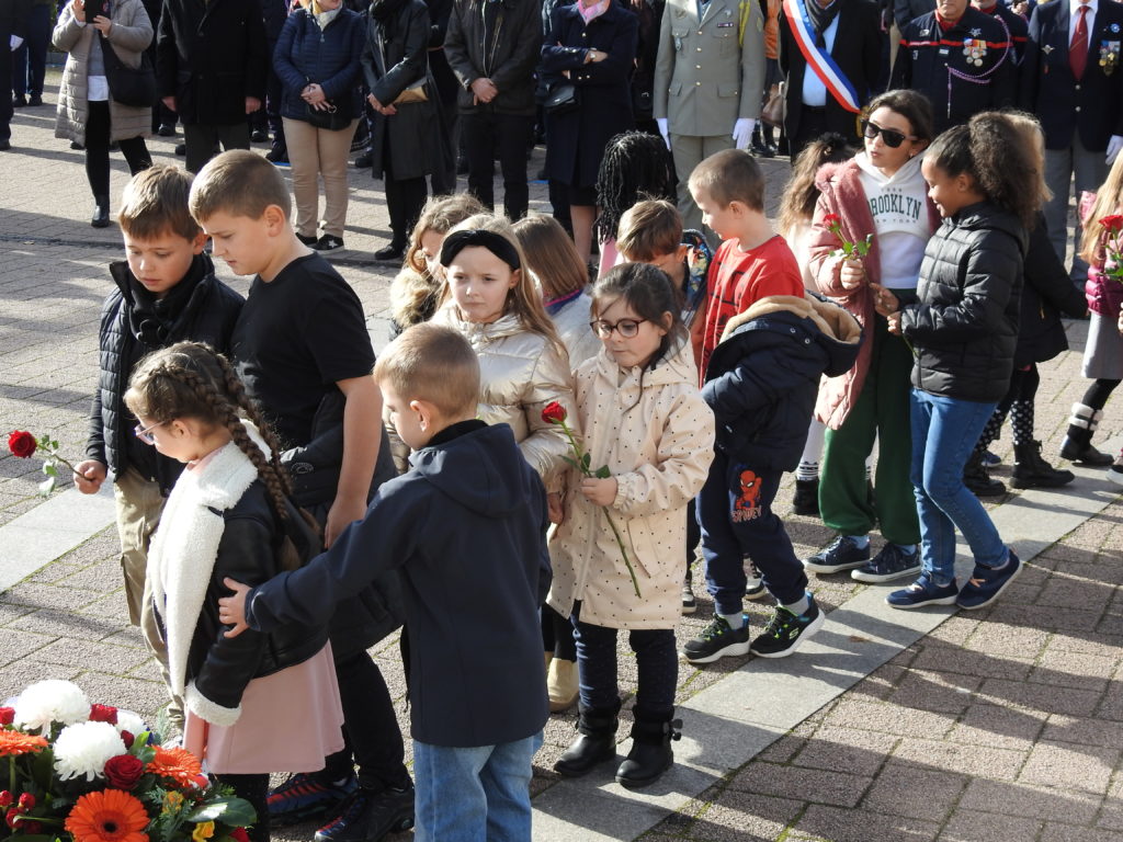 Après les traditionnels dépôts de gerbes de la municipalité et des associations patriotiques, les élèves des écoles de Beaulieu et Jean-de-la-Fontaine ont déposé des roses rouges avant d’entonner La Marseillaise.